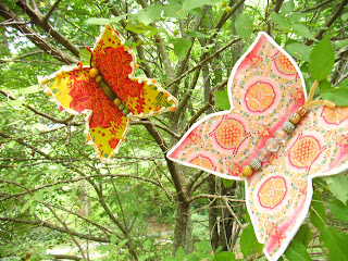 Estas mariposas no se marcharán y decorarán vuestro jardín o cualquier otro sitio que elijáis. Para realizarlas sólo necesitáis cartulina o cartón de alguna caja de cereales o similar, unos trozos de tela, unas cuentas y  limpia pipas.