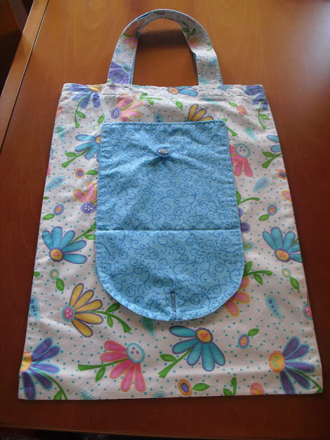 En el blog de Georgina tenéis el tutorial para hacer esta bolsa plegable. Es un tutorial muy completo, en el que además de las explicaciones, va mostrando con fotos el paso a paso.